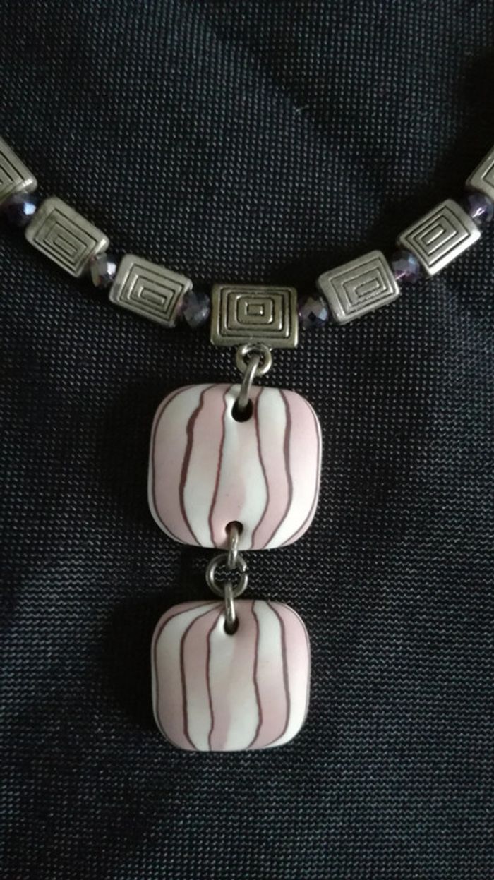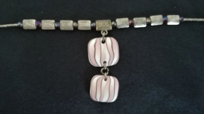 Très beau ras du cou Perles en acier Perles violettes avec reflets argentés Pendentif rose écru Longueur 42cm Neuf jamais porté