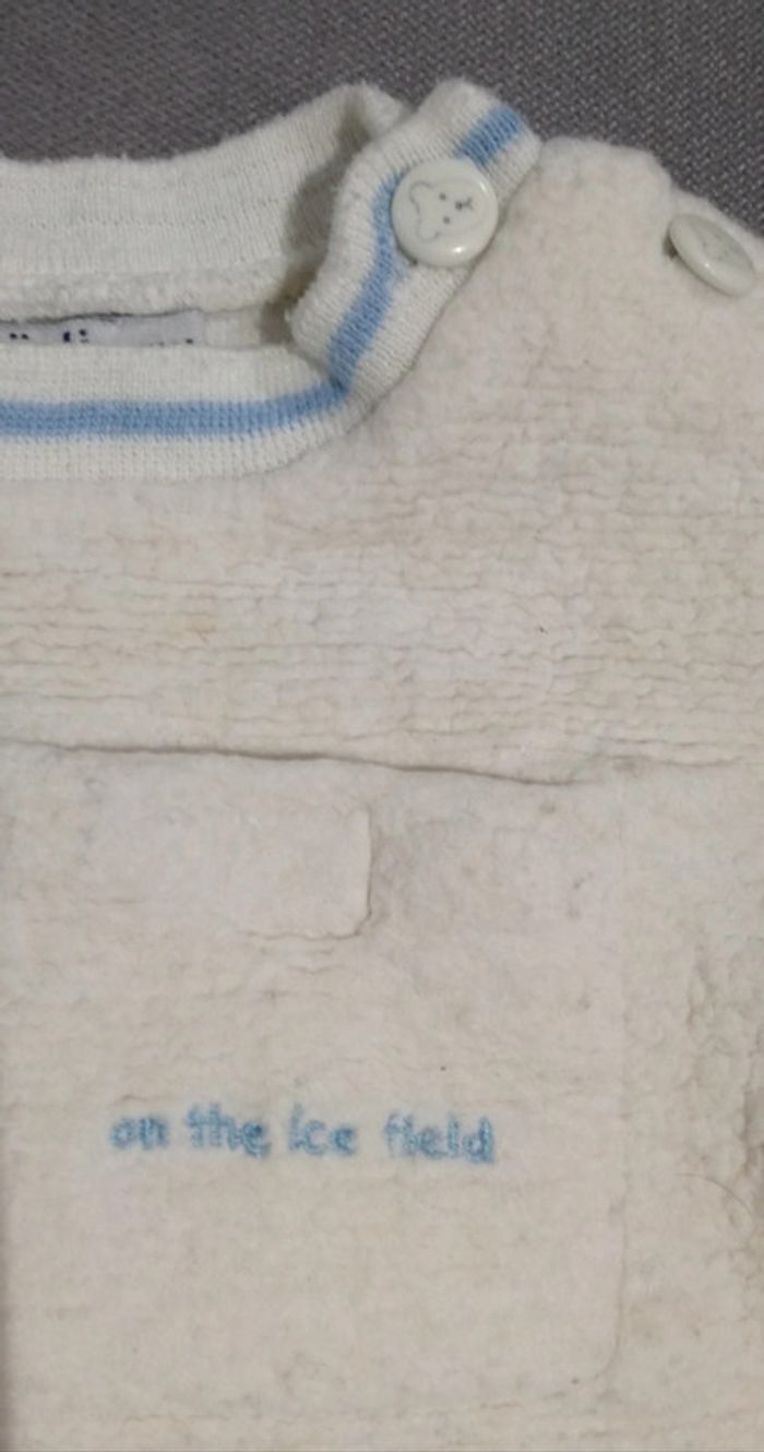 Ensemble hiver - Sweat façon laine polaire, boutons motifs «oursons» - Pantalon doublé, 2 poches sur le bas Coloris : écru et liseret bleu ciel 3 mois Okaidi