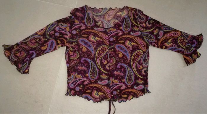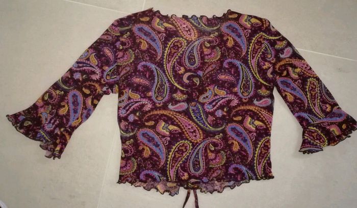 Top court Taille L 100% polyester Très bon état Cordon sur le devant pour ajuster la longueur plus ou moins court Manches 3/4 à volants