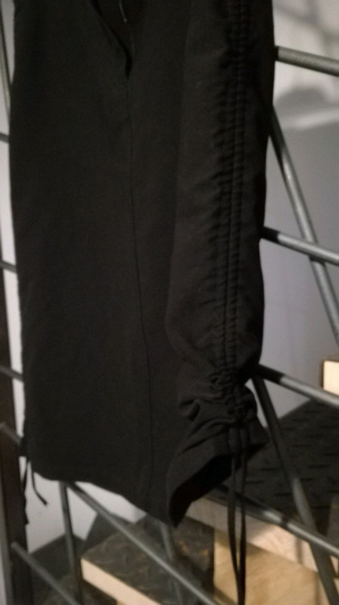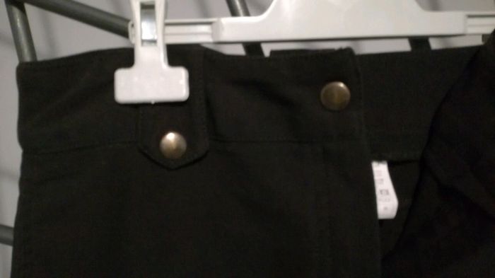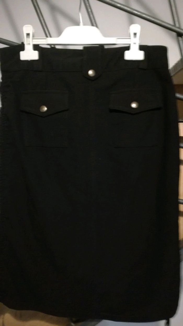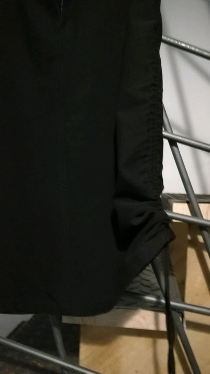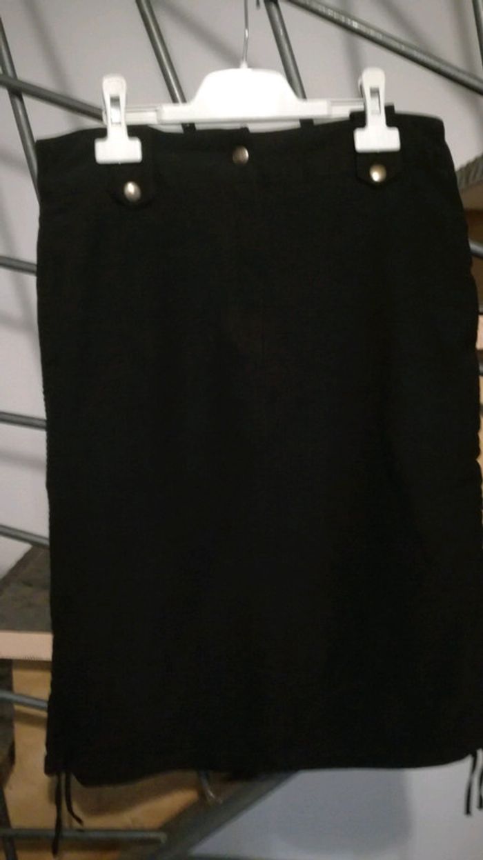 Jupe droite noire Avec lacets sur les 2 côtés On peut nouer les 2 côtés ou un seul Ou aucun pour un effet différent plus ou moins court 2 poches à pression au dos Taille 40 Marque : Camaïeu Longueur 63cm