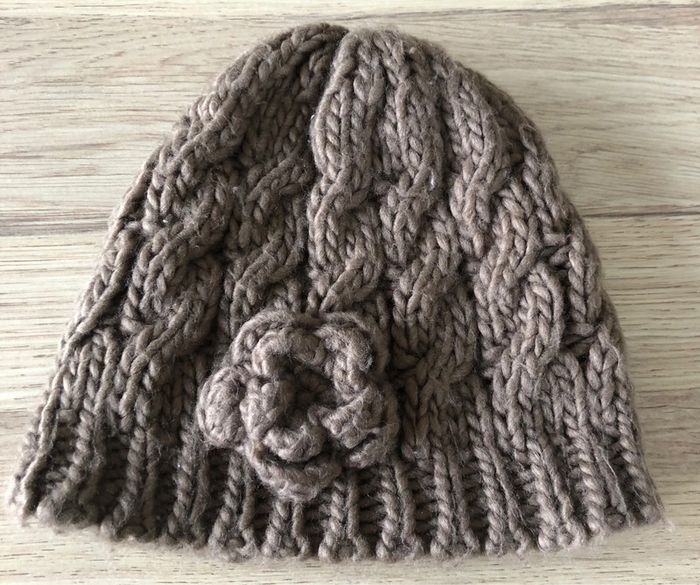 Bonnet en laine Avec rosace Coloris marron Hauteur 18cm Largeur 21cm Tour de tête 52cm