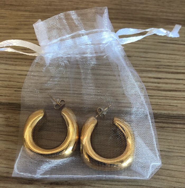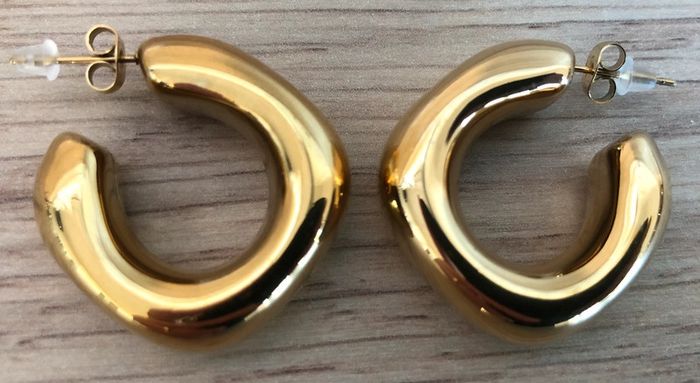Belles boucles d’oreilles Très belle qualité En acier inoxydable doré Très légères Neuves - jamais portées Dimensions 3 x 3 x 1 cm #cadeau#produitneuf#