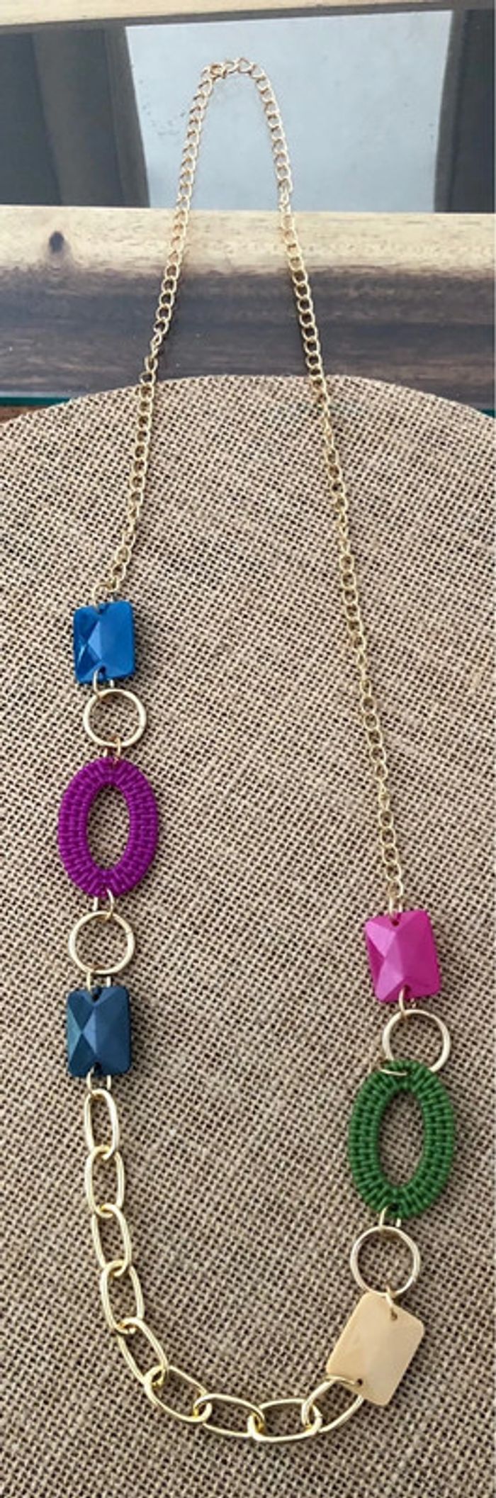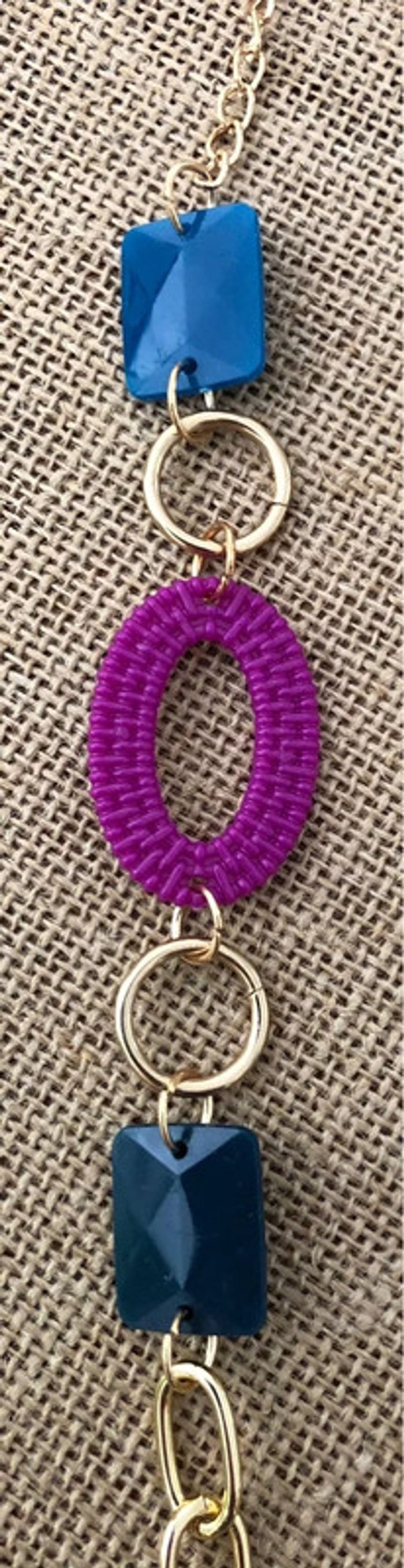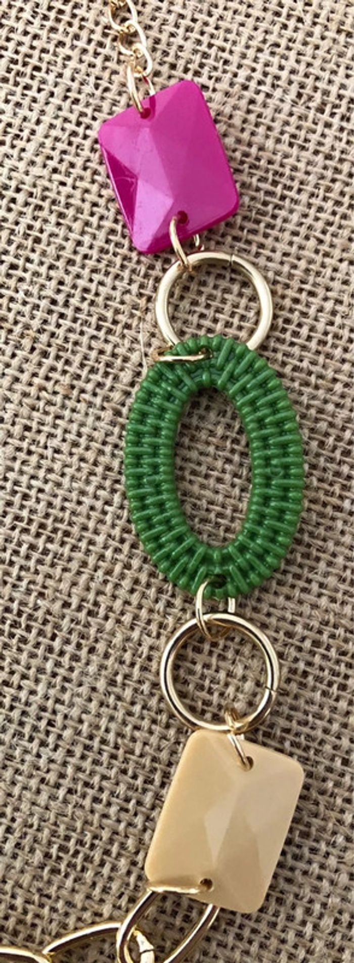 Collier sautoir fantaisie Bohème Vintage / Boho Chic Perles plastiques rectangles et ovales tressés Chaîne Longue Longueur 96cm Neuf - jamais porté