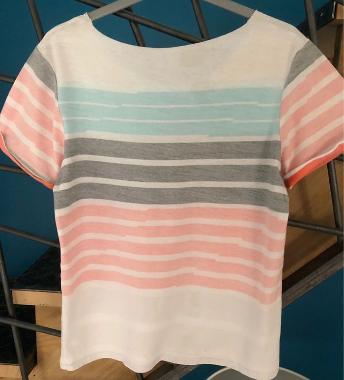 Tee-shirt rayé Fond blanc rayé turquoise/noir/pêche 100% coton Bon état Taille M