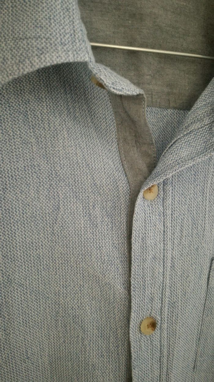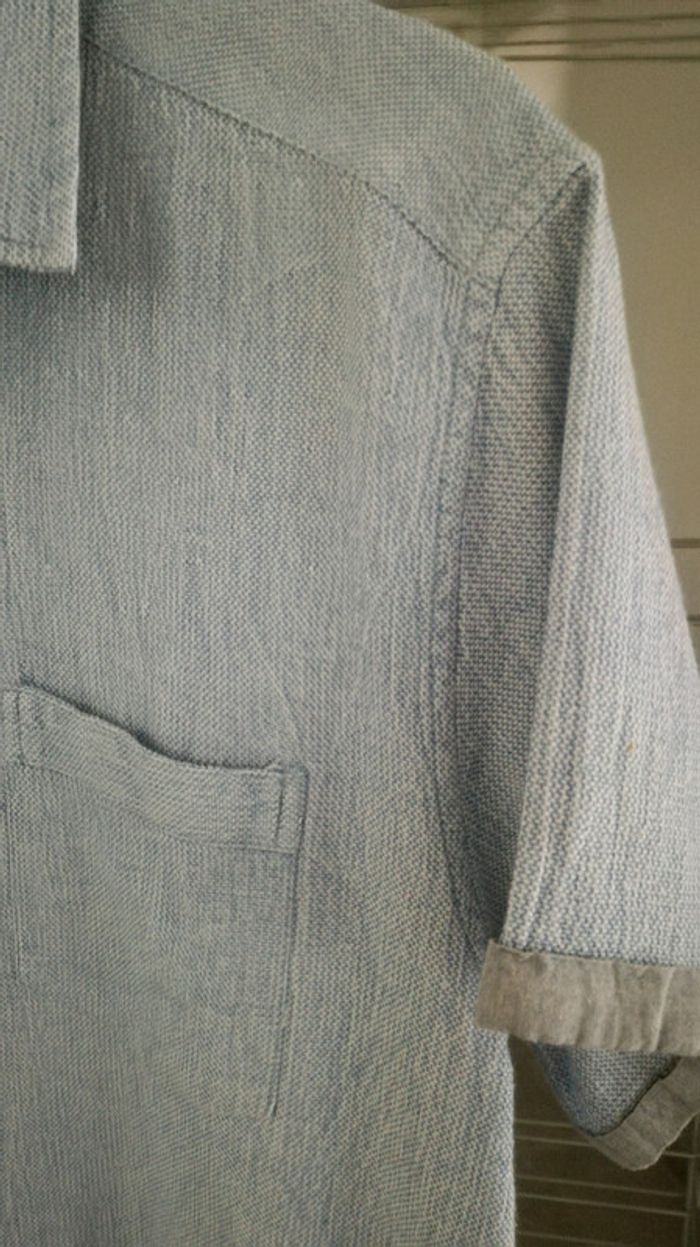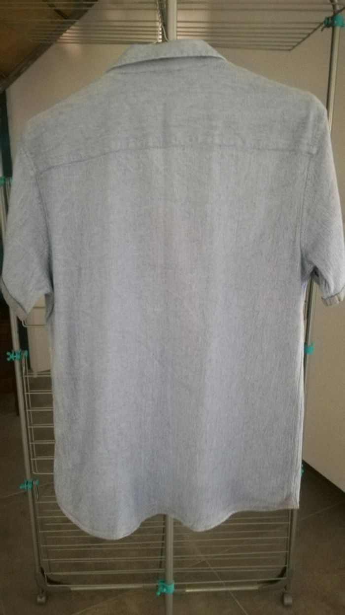 Chemise Manches courtes avec revers gris Taille : L Coloris : bleu chiné Marque : U Collection 100% coton Belle qualité Très bon état