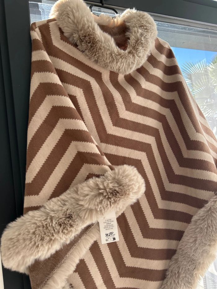 Poncho avec motif fourrure beige et marron neuf