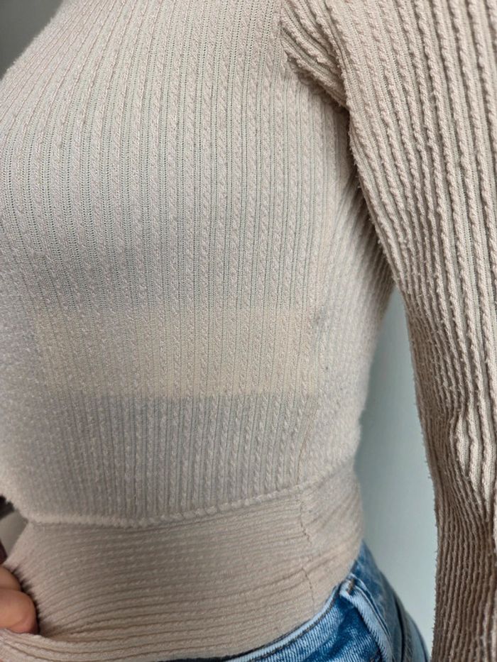 Longue manche - beige - crop top -hollister - photo numéro 4