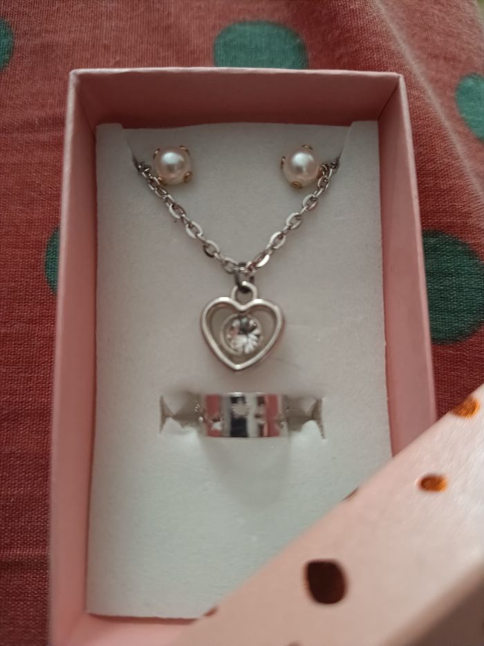 Coffret fille avec collier avec un coeur boucle d oreille perle nacrée et la bague réglable étoile argenté jamais porté