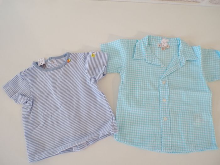 Vêtements printemps/été bébé garçon - 3 mois, en excellent état. Le lot comprend une chemise à carreaus (grain de blé), body (tex baby), barboteuse (tex), T-shirt (orchestra). Mon dressing est trié par catégories, tailles et saisons pour les vêtements. Cliquez sur mes liens # qui sont dans l'annonce. #sonia222404 #bébégarçon3moisprintempsétésonia222404