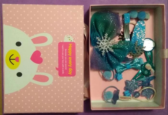 NEUF jamais utilisé Coffret avec anses en ruban contenant 15 accessoires pour les cheveux Reine des Neiges