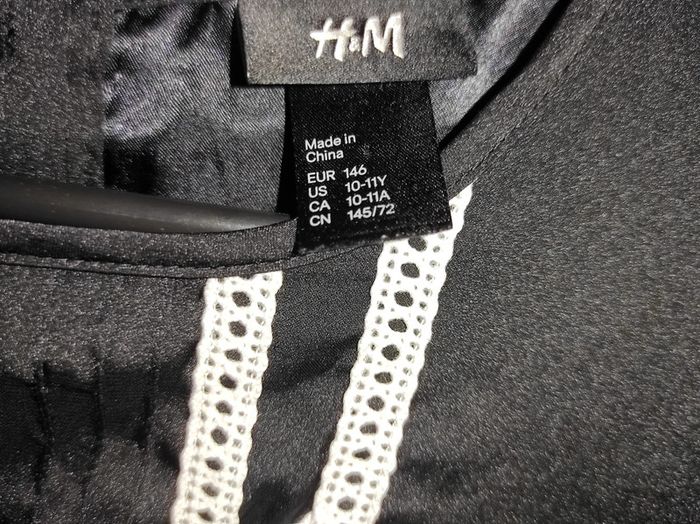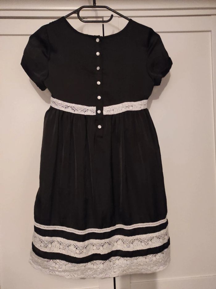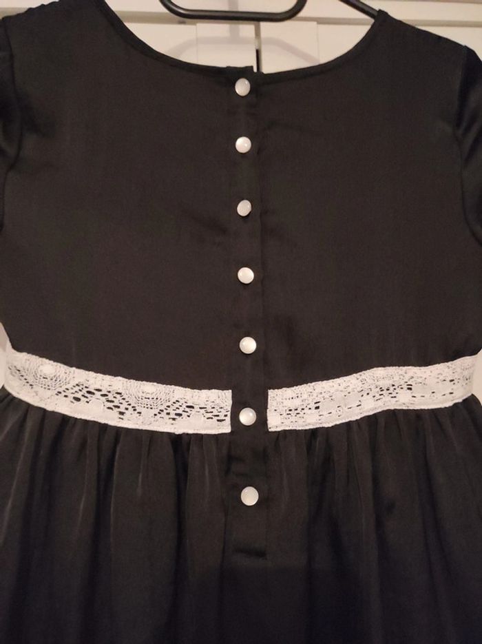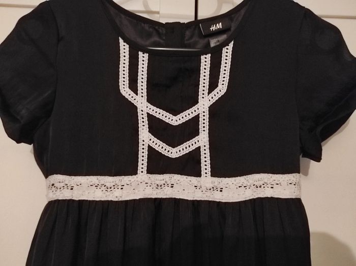 Portée 1 fois H&M Robe de soirée noire et dentelle blanche, doublure noire, boutons nacrés Taille 146 - 10/12 ans