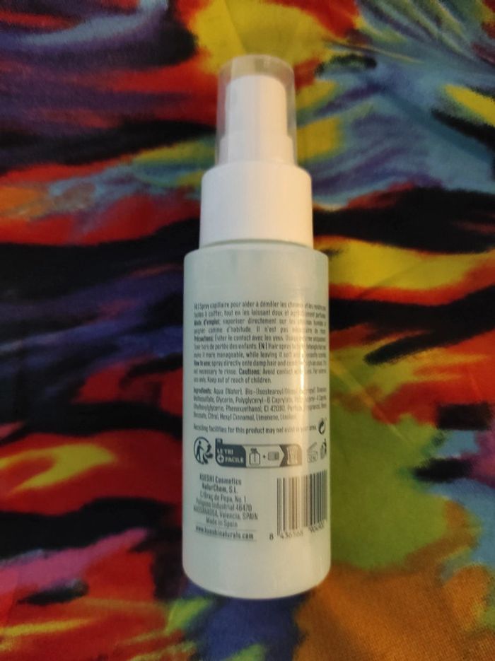 NEUF jamais utilisé Kueshi Spray capillaire démêlant sans rinçage Composé : De glycérine, utilisée pour son fort pouvoir hydratant. De plus, elle est utilisée en tant que conditionneur capillaire. Elle laisse les cheveux démêlés, souples, doux et brillants. D’un actif démêlant, qui laisse les cheveux faciles à coiffer, léger, doux et soyeux et/ou donne du volume. D’un parfum divin qui laissera un voile estival Contenance 60 ml - 15€