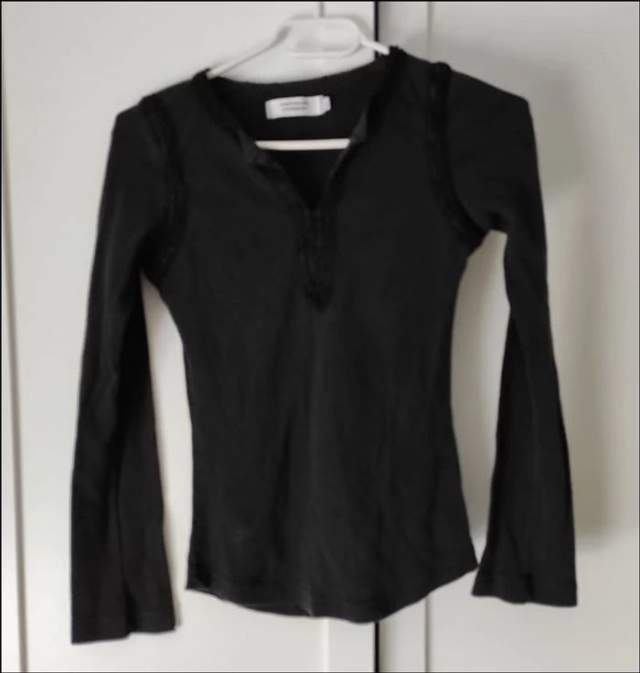 Porté mais bon état COMPTOIR DES COTONNIERS Haut noir à manches longues Taille indiquée : S #gaby0075TailleXS #gaby0075TailleS