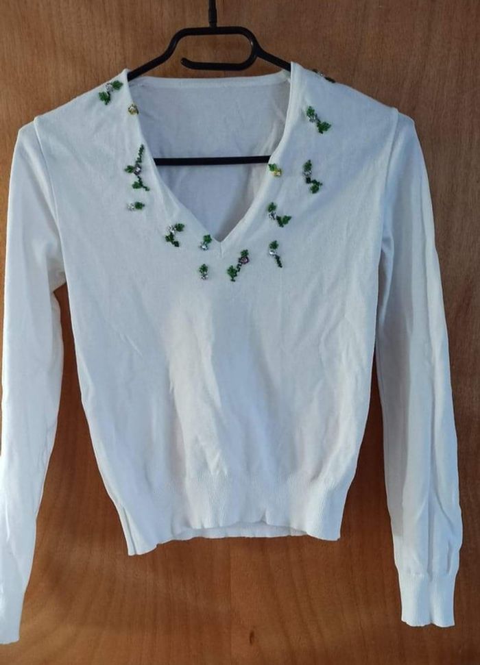 Lavé mais jamais porté Pull blanc fin col V Pas de taille indiquée, plutôt un XS/S #gaby0075TailleXS #gaby0075TailleS