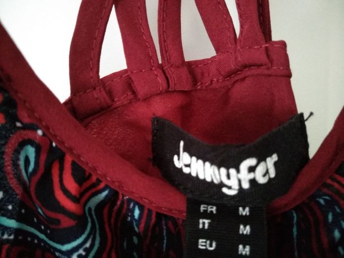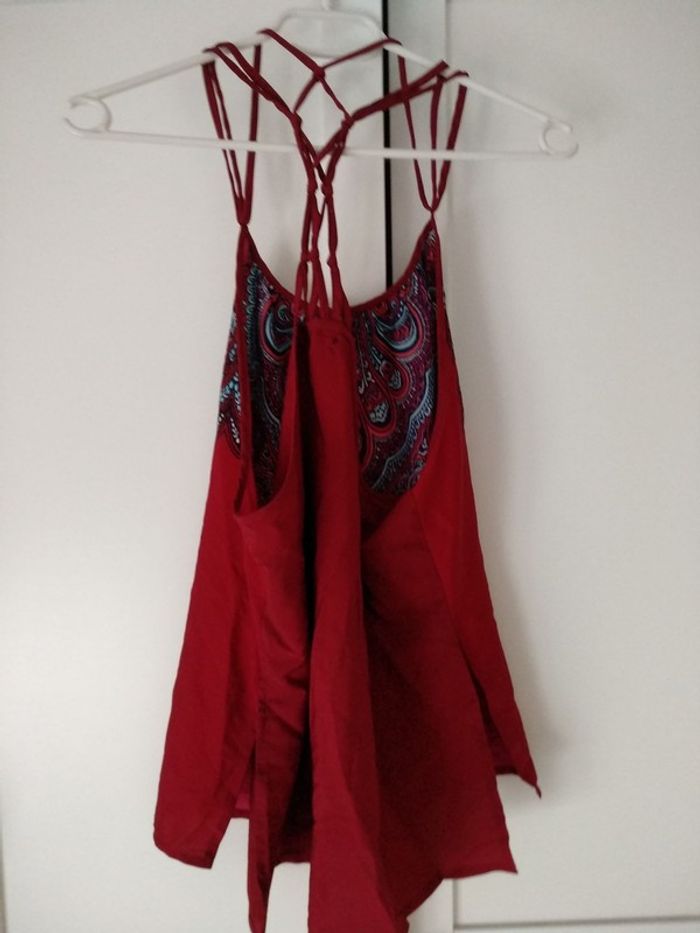 Lavé mais jamais porté (trop petit) JENNYFER Haut bordeaux avec motifs ethniques, joli jeu de bretelles Taille M #gaby0075TailleS #gaby0075TailleM
