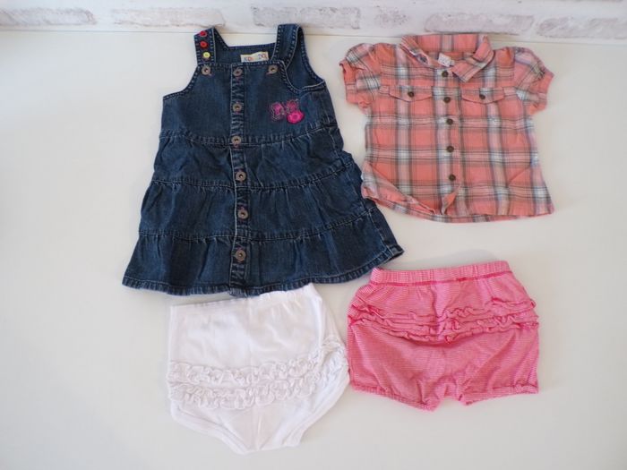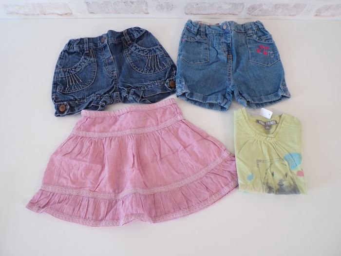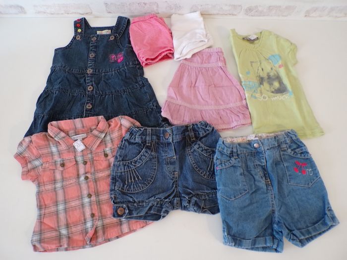Vêtements fille 2 ans / 24 mois - Printemps / été en excellent état. Le lot comprend un robe en jean (Kokodo), short bleu foncé (Kidkanaï), short bleu clair (orchestra), jupe (tout simplement), chemise (in extenso) avec bouton pression, bloomer rose (verbaudet), bloomer blanc (U petite tâche très légère à l'intérieur qui devrait partir au lavage), T-shirt vert que je donne car deux petits trous à l'épaule de gauche. Mon dressing est trié par catégories, tailles et saisons pour les vêtements. Cliquez sur mes liens # qui sont dans l'annonce. #sonia222404 #fille24moisprintempsétésonia222404