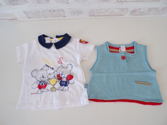 Vêtement bébé garçon - 6 mois - Printemps / été en très bon état. Le lot comprend, 2 bodies (orchestra), un pul sans manche fin, (dpam), T-shirt (bimbus petite tâche au dos du bras droit devrait partir au lavage). Mon dressing est trié par catégories, tailles et saisons pour les vêtements. Cliquez sur mes liens # qui sont dans l'annonce. #sonia222404 #garçon6moisprintempsétésonia222404