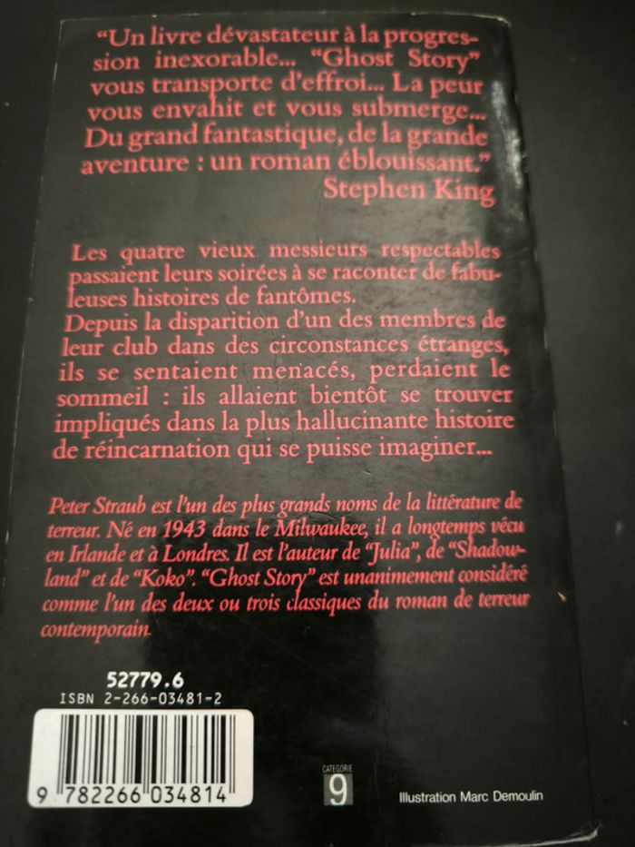 Un chef-d'œuvre du roman d’horreur surnaturel. Quatre hommes âgés se retrouvent à Milburn pour se raconter des histoires terrifiantes. Mais lorsqu’un terrible secret du passé revient les hanter, le cauchemar devient réel… Une ambiance glaçante, entre fantastique, suspense et frissons garantis. #GhostStory #PeterStraub #livrehorreur #histoiredefantôme #thriller #livreoccasion #vintedlivres #romanangoissant #frissons #halloweenlecture