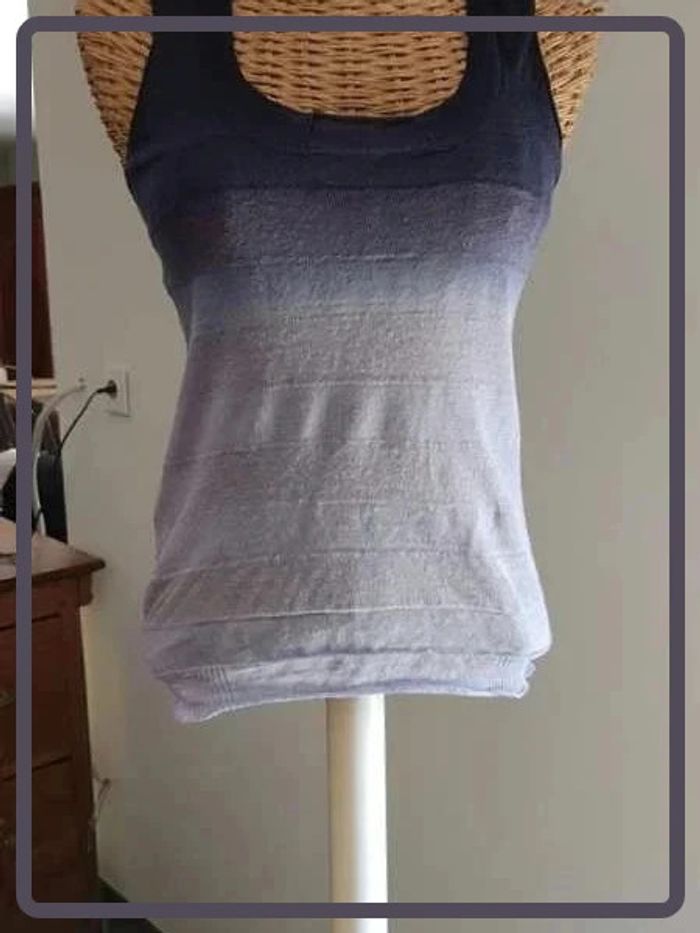 Débardeur dégradé de bleu. Taille 36. De marque IKKS. Très bon état. N'hésitez pas à regrouper vos achats pour optimiser les frais de ports. #vetementfemme36mykonoa