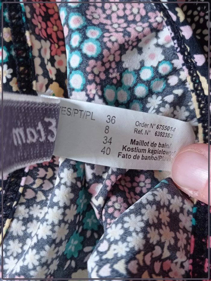 Maillot de bain 2 pièces fleuri. De la marque « Etam ». Taille 36. Bon état. N’hésitez pas à regrouper vos achats pour optimiser les frais de ports. #vetementfemme36mykonoa C1.
