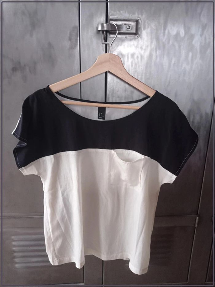 T-shirt manches courtes bicolore noir et blanc taille 36 très bon état H&M - photo numéro 1