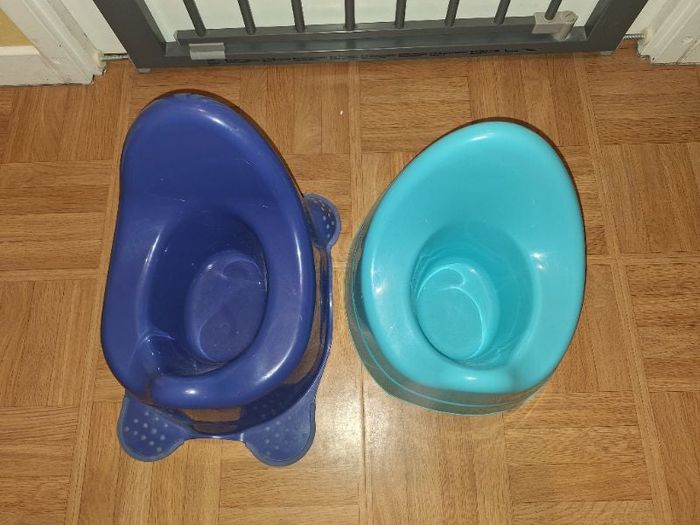 Vend lot de 2 pots de chambre 5 euros ou 3.5 euros l'unité en très bonne état et désinfecté de marque tex un bleu foncé et un bleu clair