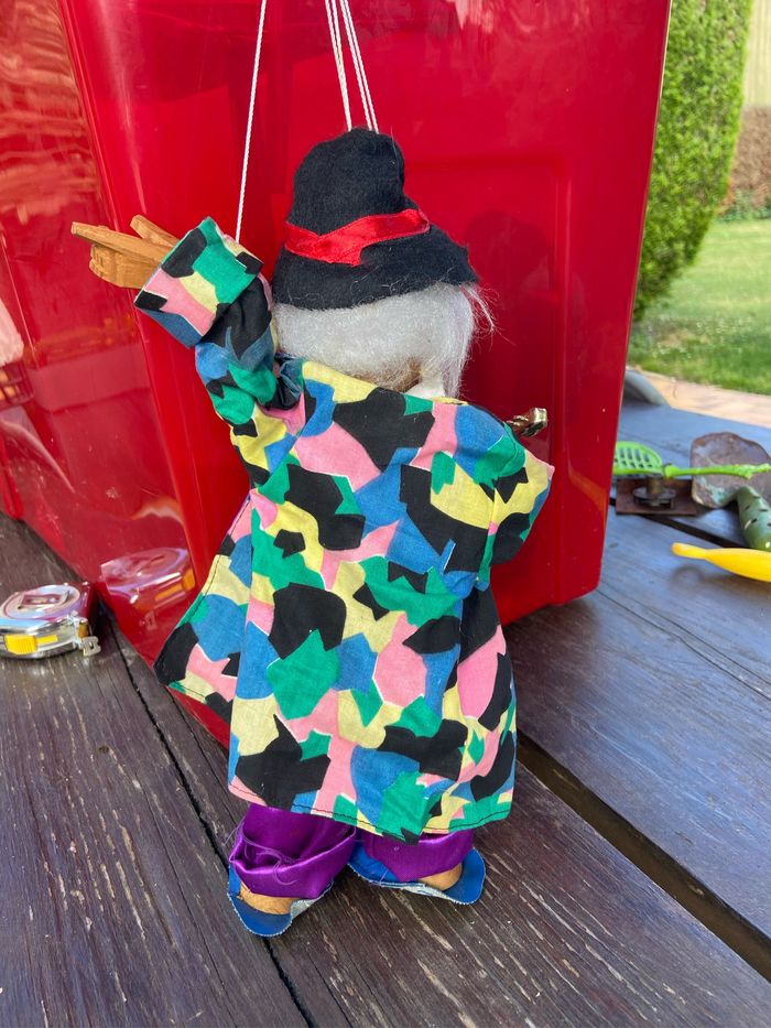 A vendre. Superbe clown marionnette à fil en bois mesurant 32 cm (debout).