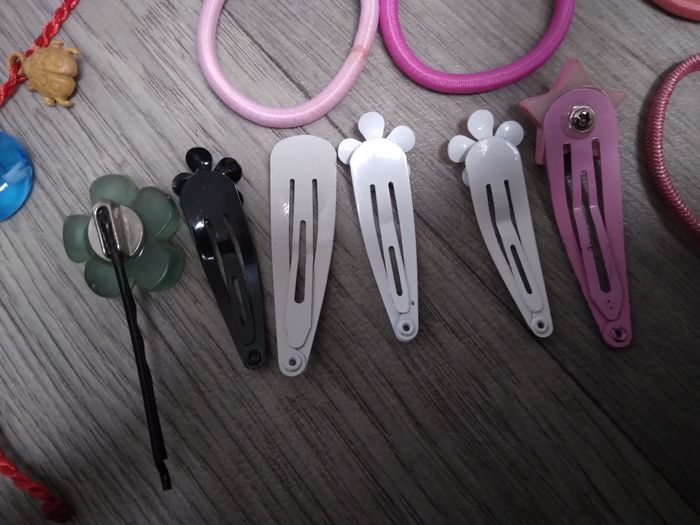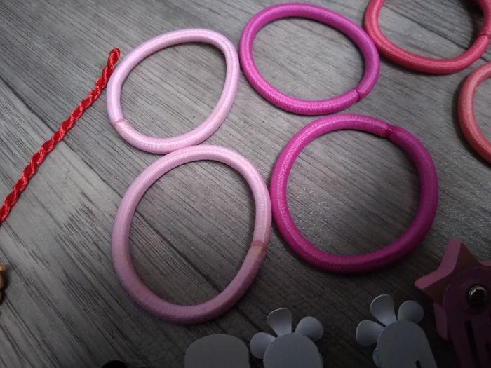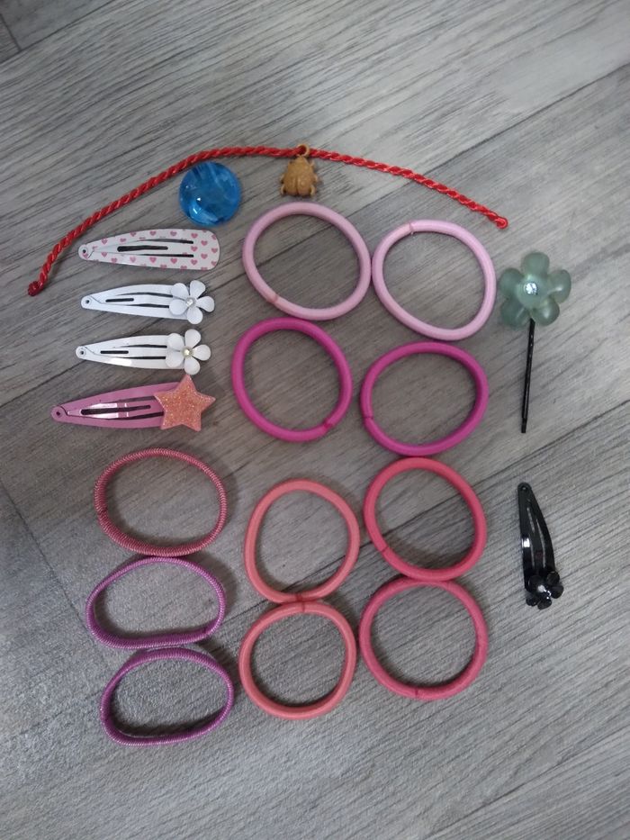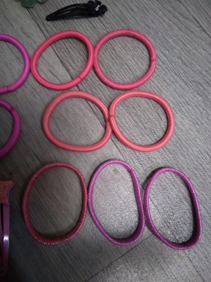 Lot élastiques neuf non utiliser + pinces ( fleur non utiliser) les autres très bon état / bon état + bracelet Neuf non utiliser