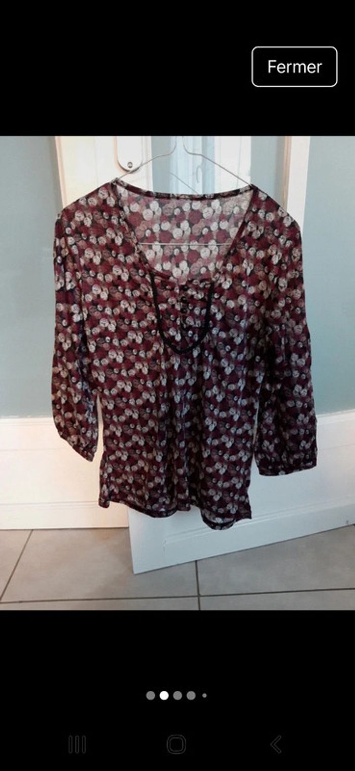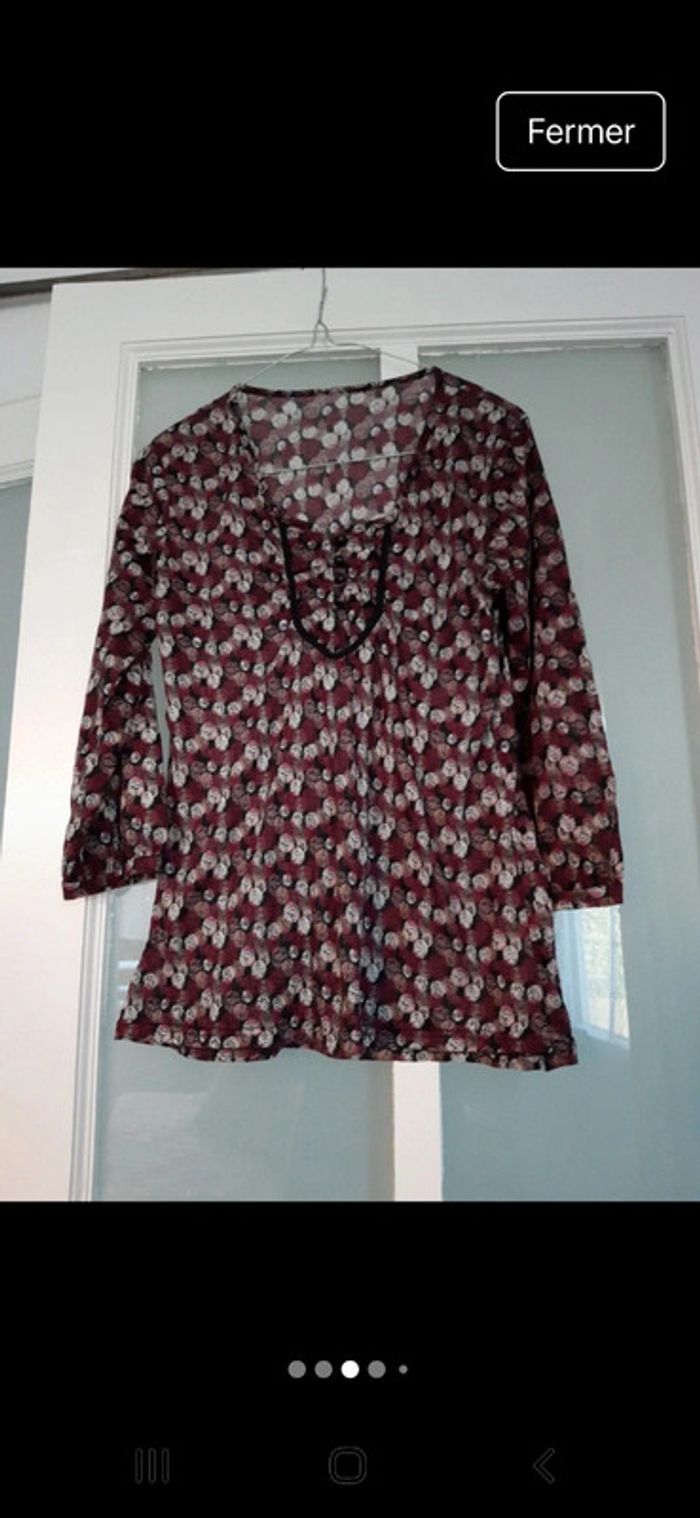 Blouse tons bordeaux et motifs Manches 3/4 Taille 38 #sevileano_blouses