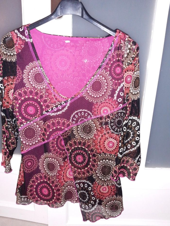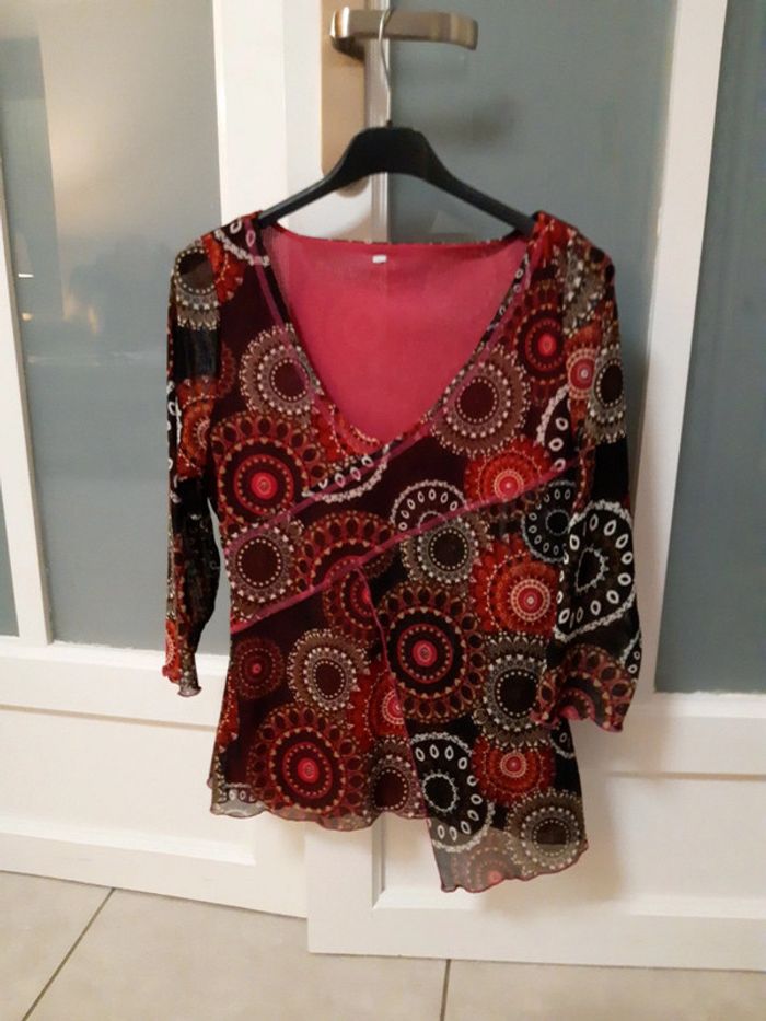 Haut en voile tons bordeaux Taille 38 #sevileano_hautsmancheslongues