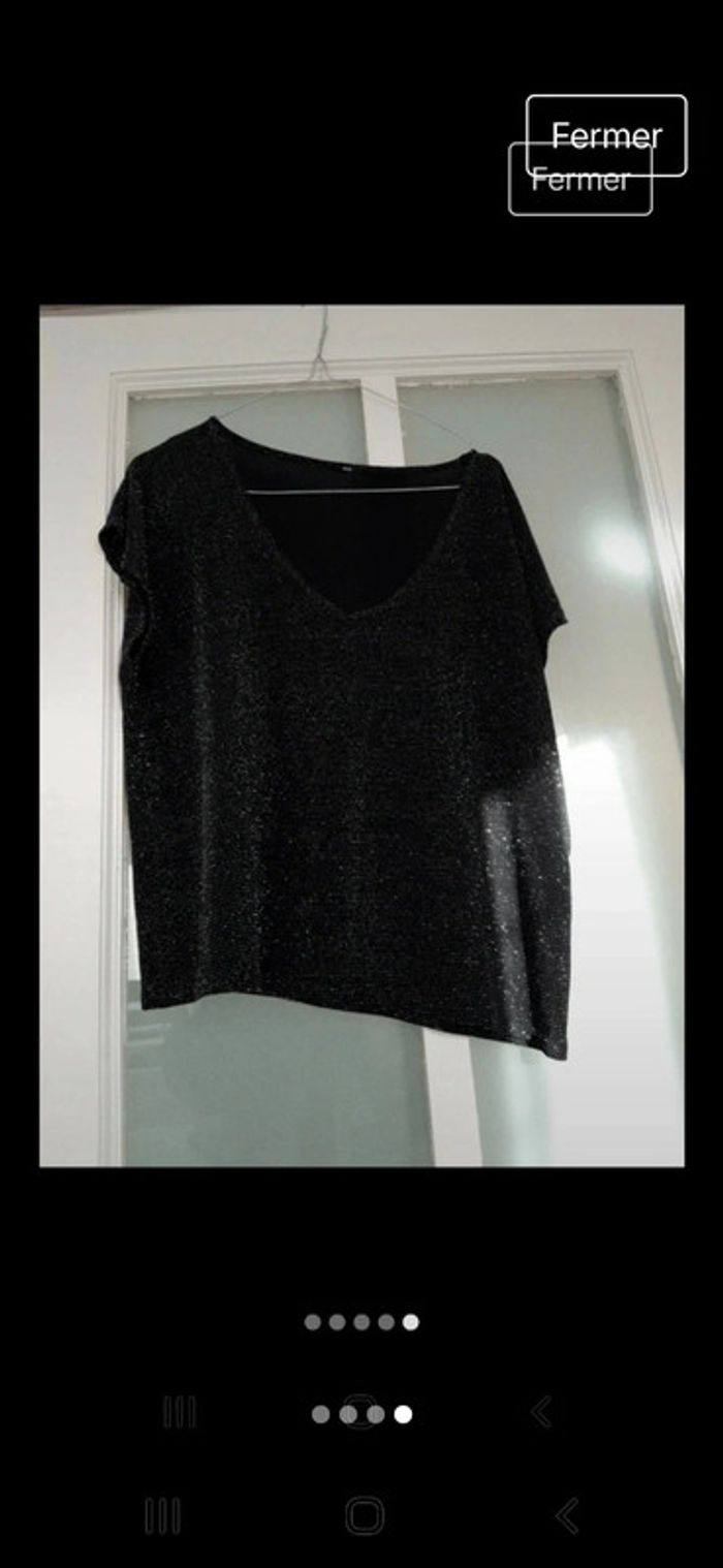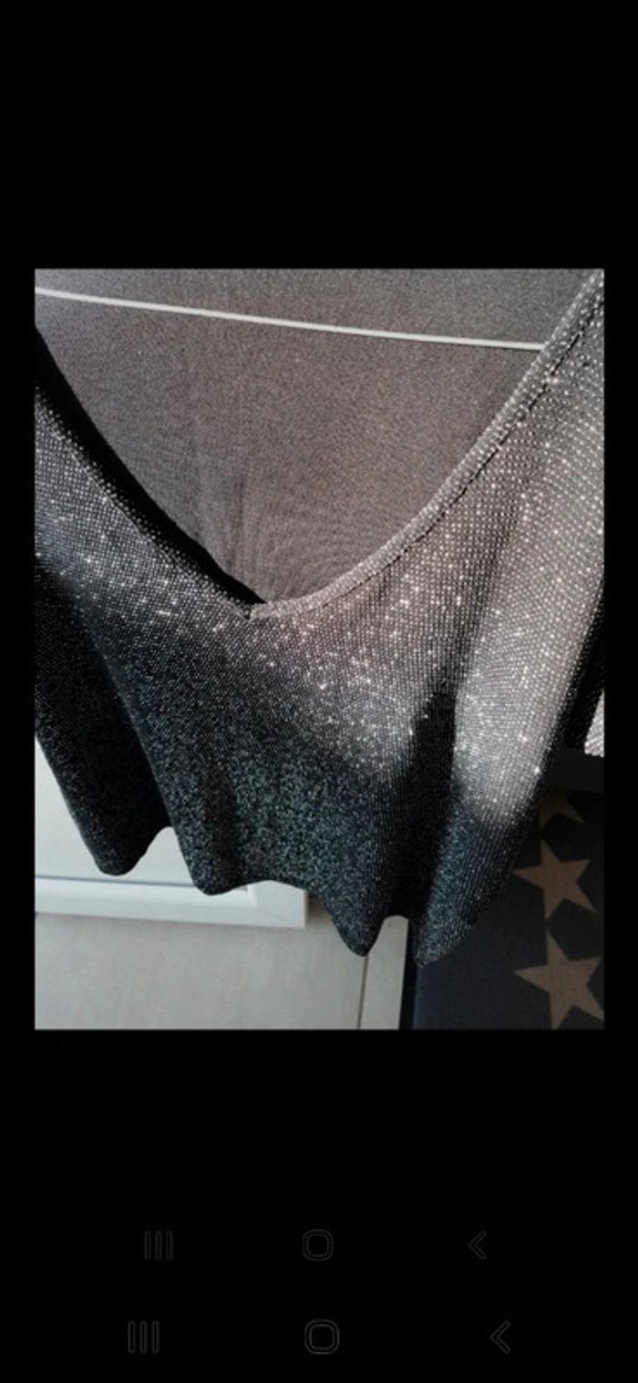 Haut paillettes argent Taille 40 col v Idéal pour les fêtes #sevileano_hautsmanchescourtes