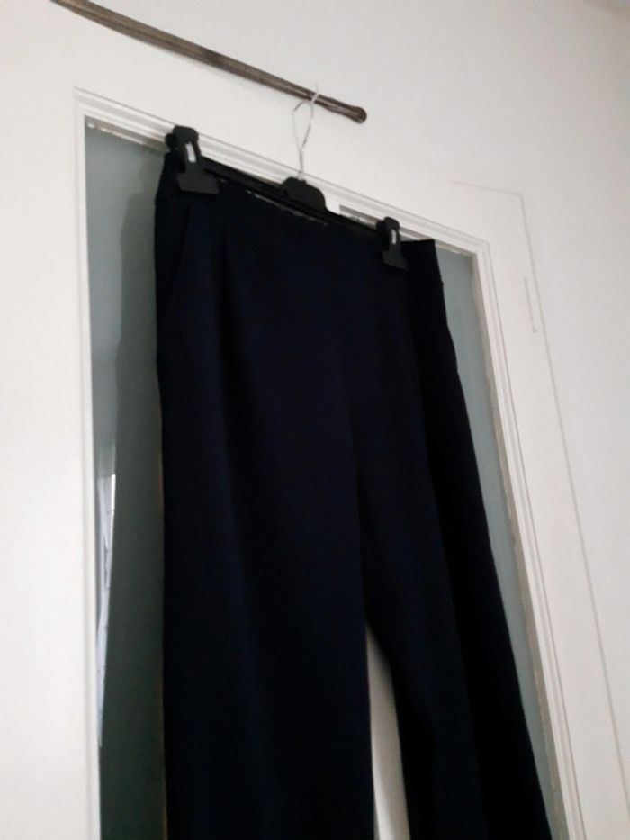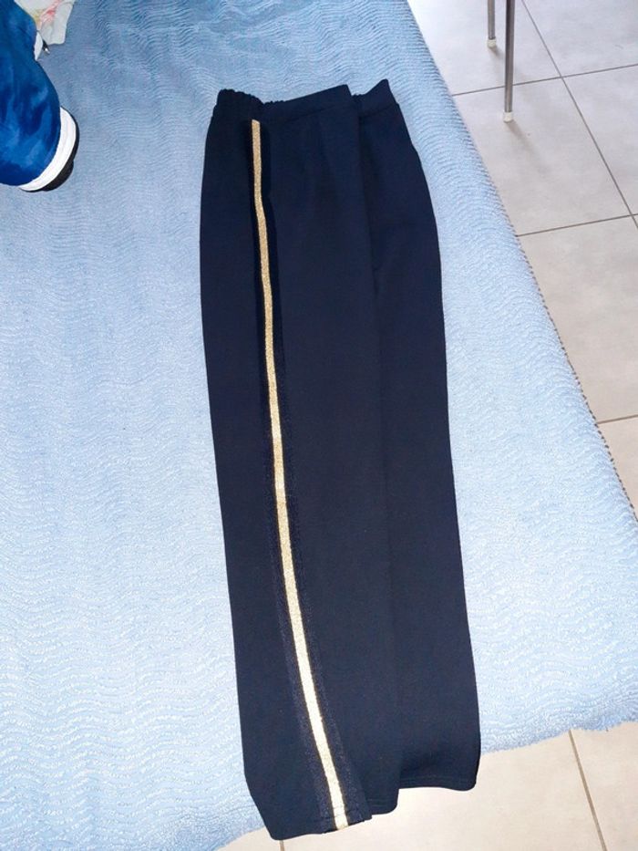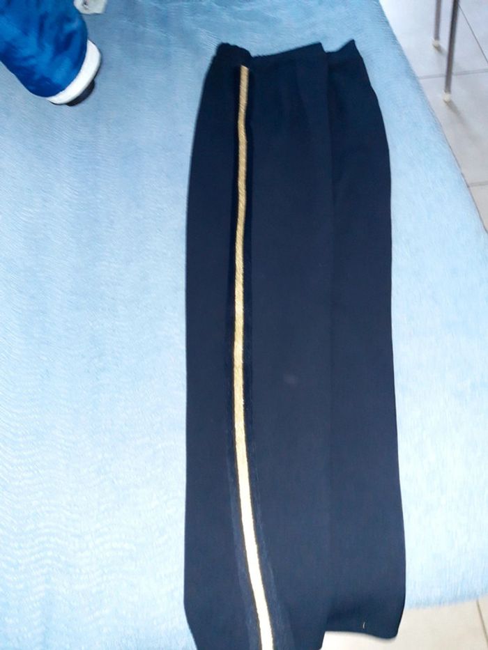 Pantalon bleu marine habillé à pinces, genre smoking avec bandes dorées Taille M ou 38 et élastique avec poches #sevileano_pantalons