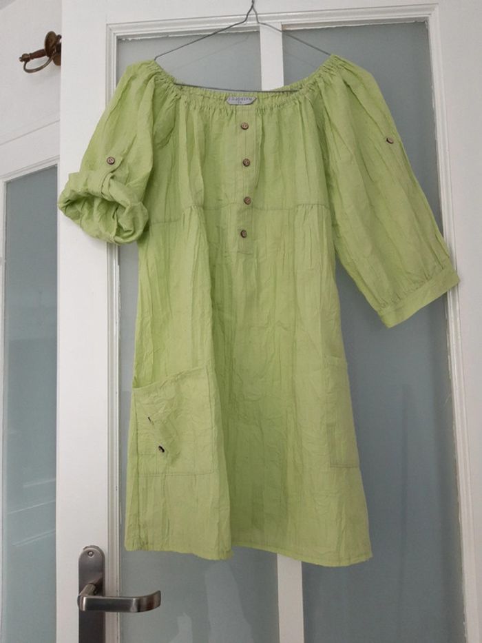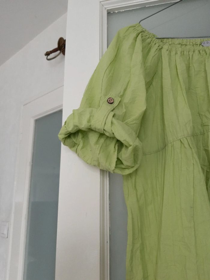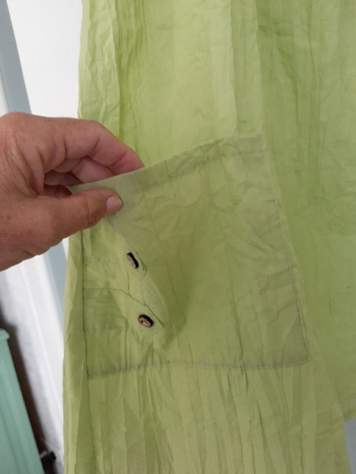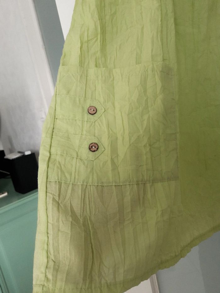 Blouse grande taille 50/ 52 ou taille 4 Vert tendre avec poches Aisselles à aisselles 60 cm Longueur 79 cm Manches 2 façons de la porter