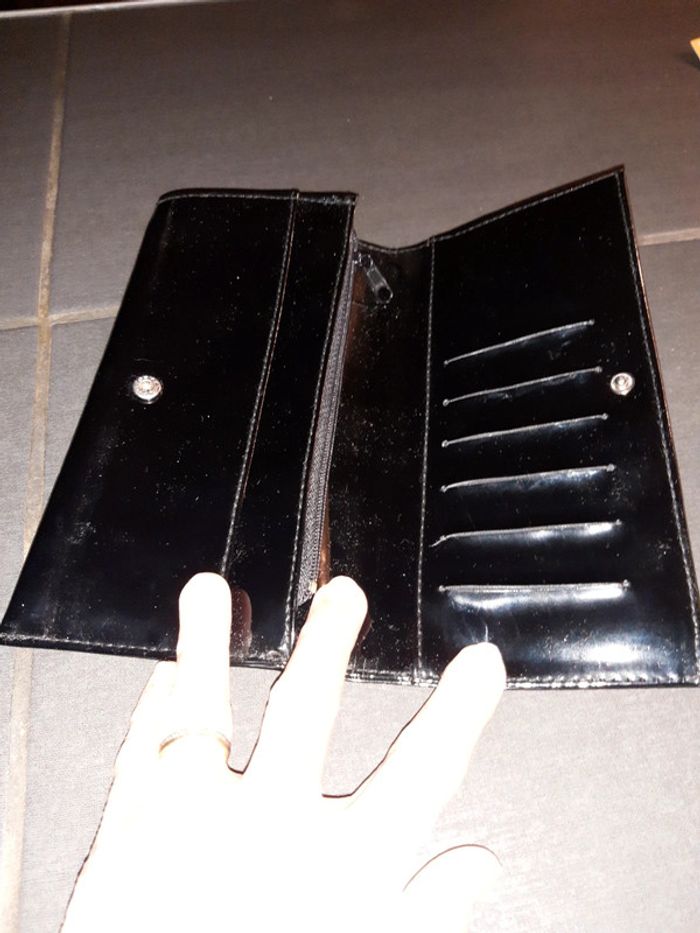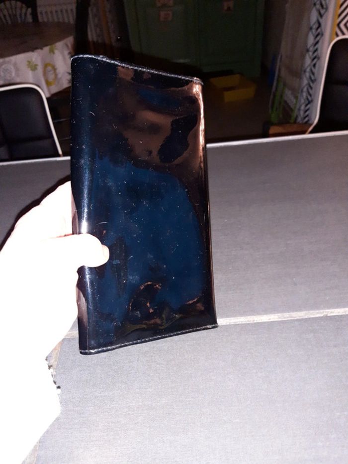 Porte cartes ,billets et pièces en noir brillant