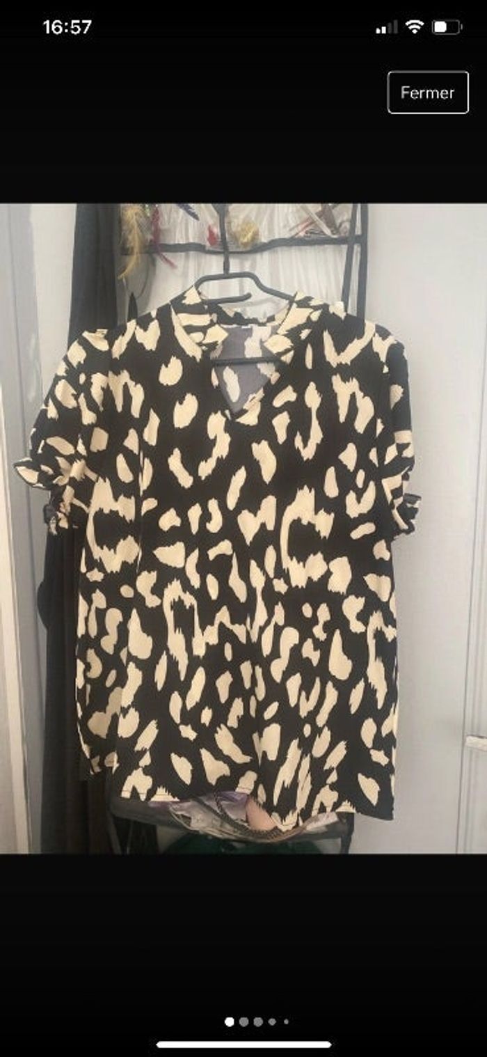 12. Neuf. Taille L. Motif léopard, couleur noire et crème.
