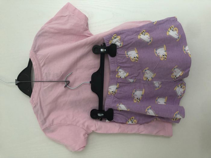 Joli pyjama fille, 2 pièces, composé d'un tee-shirt et d'un short élastiqué à la taille. Motif Belle de la Belle et la Bête Marque Disney Taille 5 ans, 110 cm