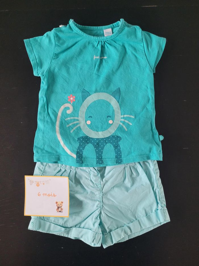 Lot tee-shirts & short été fille 6 mois - photo numéro 1