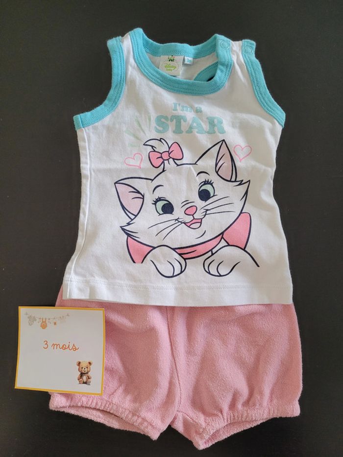 Lot habits printemps été fille 3 mois L'ensemble short débardeur Disney, la combinaison Orchestra ainsi que les 2 tee-shirts Orchestra ont été très peu mis, ils sont en excellent état.