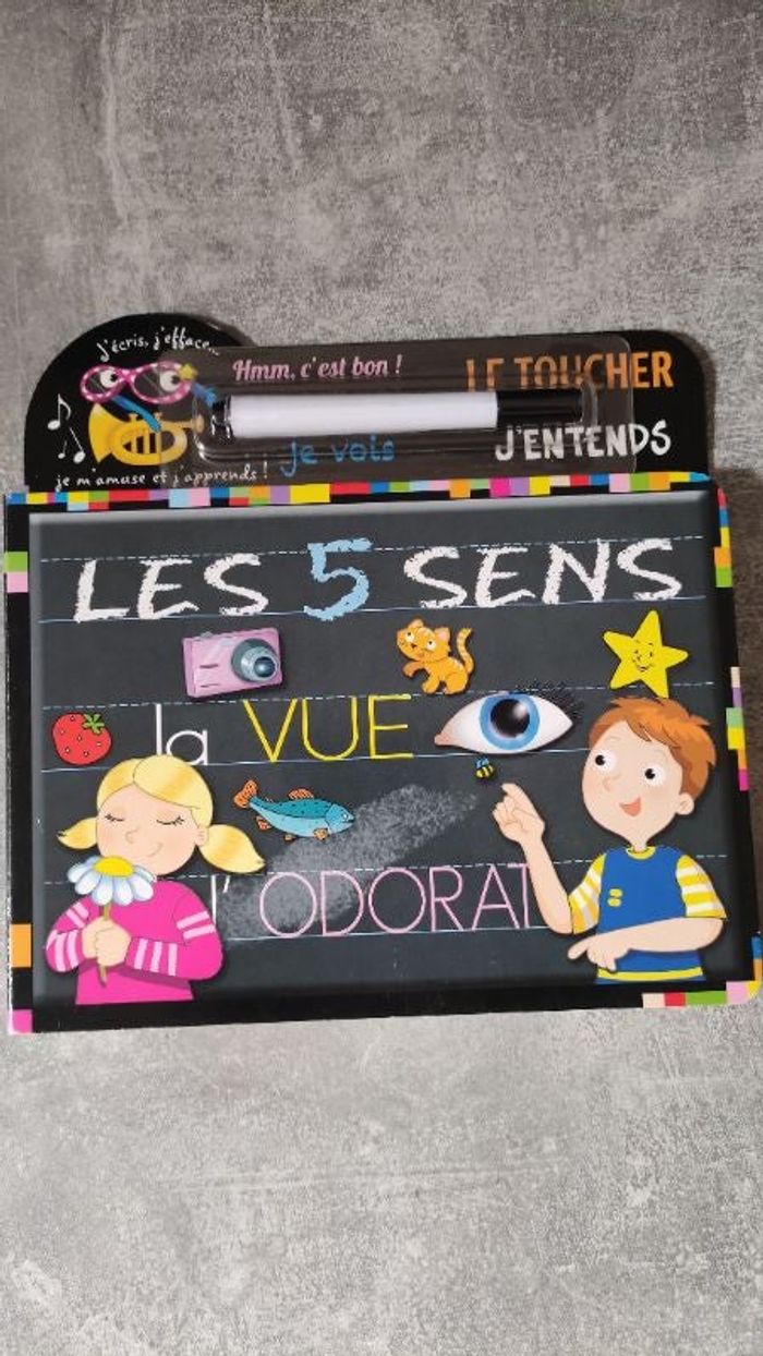 Livre ardoise enfant Les 5 sens, j'écris j'efface, neuf