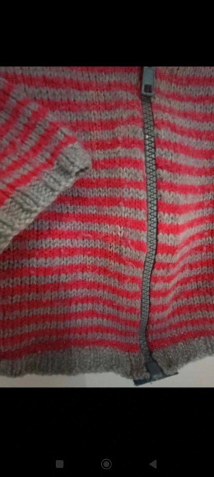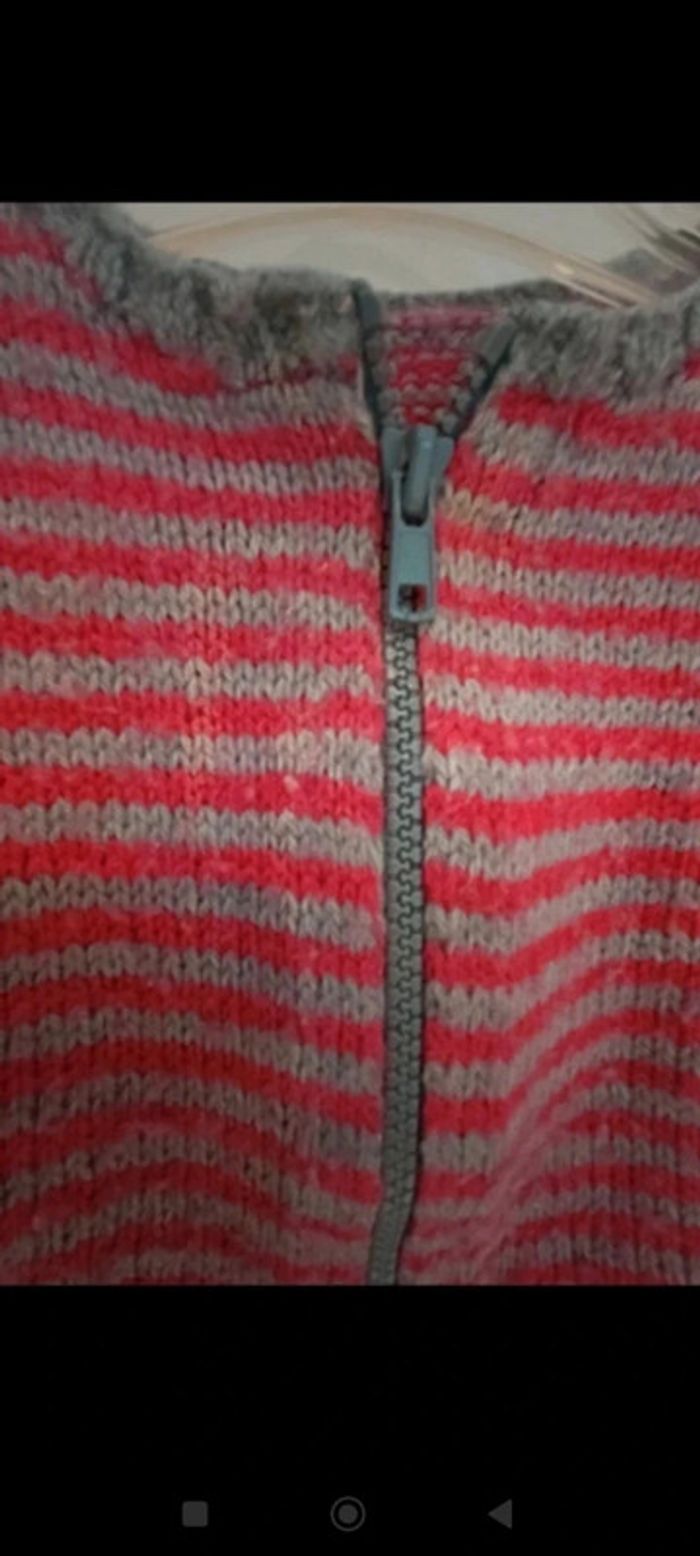 Gilet en laine tricot main, rayé gris et rouge avec zip, mixte #mariol69110fille6mois #mariol69110garcon6mois