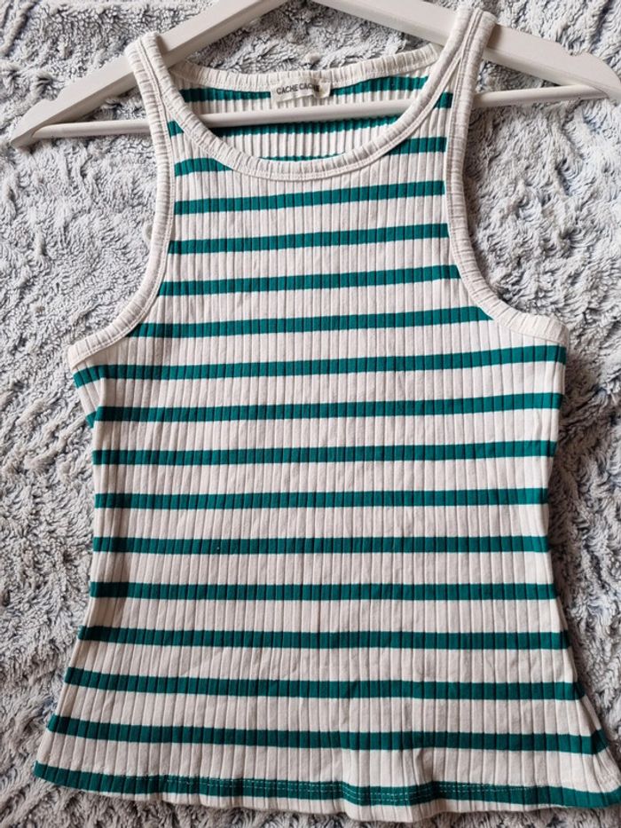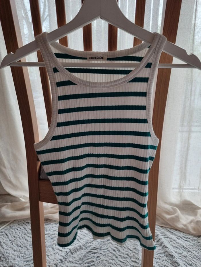Débardeur marinière vert Moulant Marque Cache-cache Taille M #Mfemmepristicat #38femmepristicat