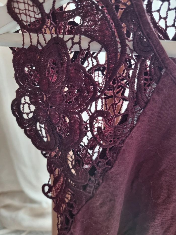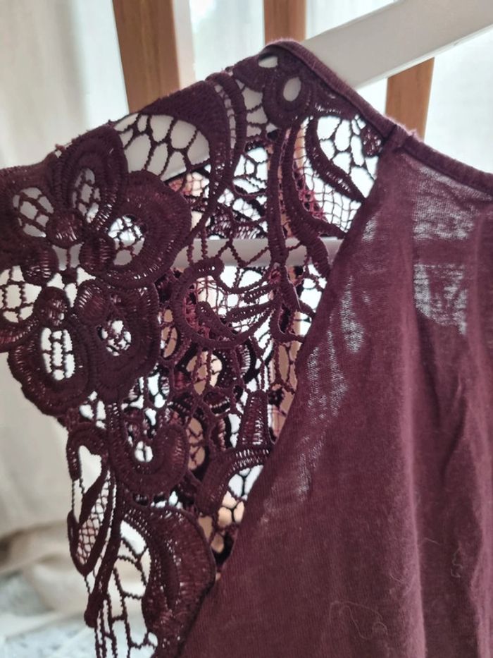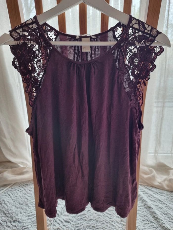 Débardeur bordeaux Effet dentelle sur les épaules Col rond Marque H&M Taille L #Lfemmepristicat #40femmepristicat