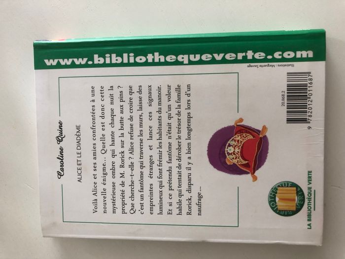 Livre Alice et le diadème Tome 9 Auteur(s) : Quine Caroline Editeur : Hachette Jeunesse Saga : ALICE Collection : Bibliothèque Verte Langue : Français Nombre de pages : 186 Dimensions approx : 18 x 12.5 x 1 cm Voilà Alice et ses amies confrontées à une nouvelle énigme... Quelle est donc cette mystérieuse ombre qui hante chaque nuit la propriété de M. Rorick sur la butte aux pins ? Que cherche-t-elle ? Alice refuse de croire que c'est un fantôme qui traverse les murs, laisse des empreintes étranges et lance ces signaux lumineux qui font frémir les habitants du manoir. Et si ce prétendu fantôme n'était qu'un voleur habile qui tentait de dérober le trésor de la famille Rorick, disparu il y a bien longtemps lors d'un naufrage...