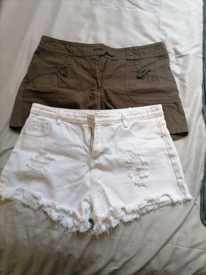 Lot de 2 shorts en très bon état 1 blanc sans marque et 1 marron de marque h&m Taille 40 Les deux 6 euros