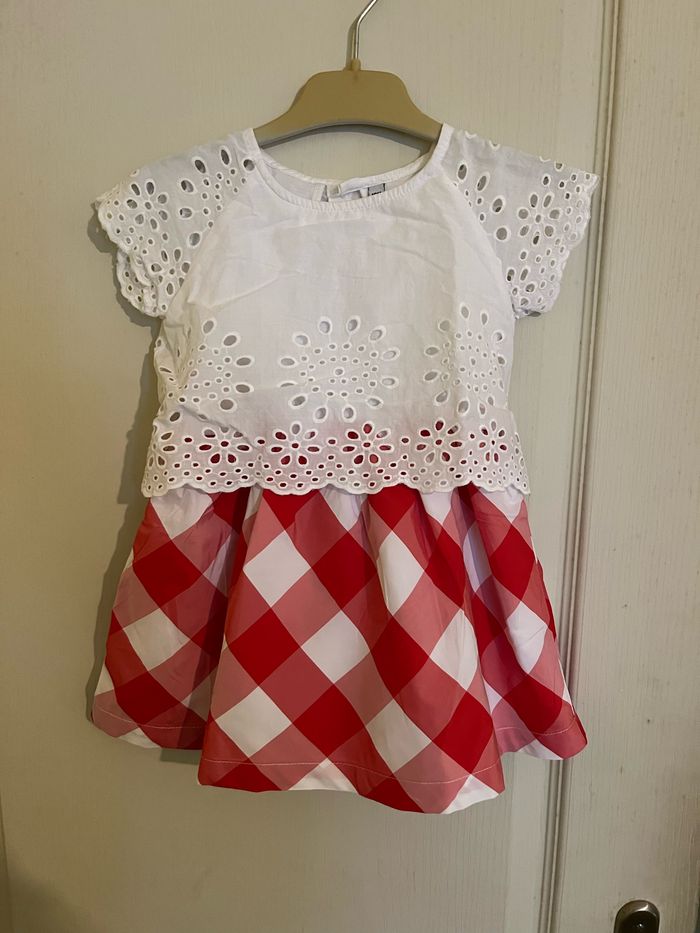 Vends robe blanche et à carreaux en très bon état. Taille 18mois