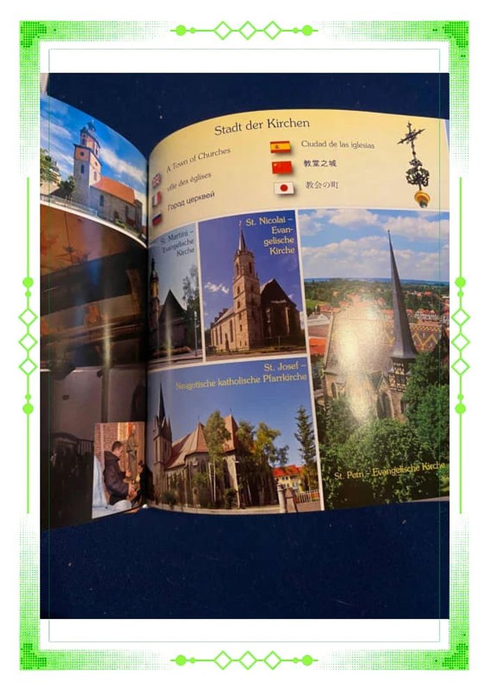 Très beau livre d’une cinquantaine de pages en 7 langues décrivant les infrastructures et architectures, histoire de Mühlhausen Envoi rapide