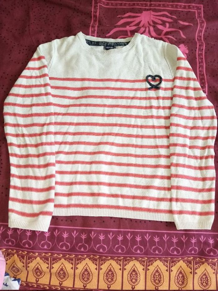 pull à rayures et 3 boutons sur une épaule