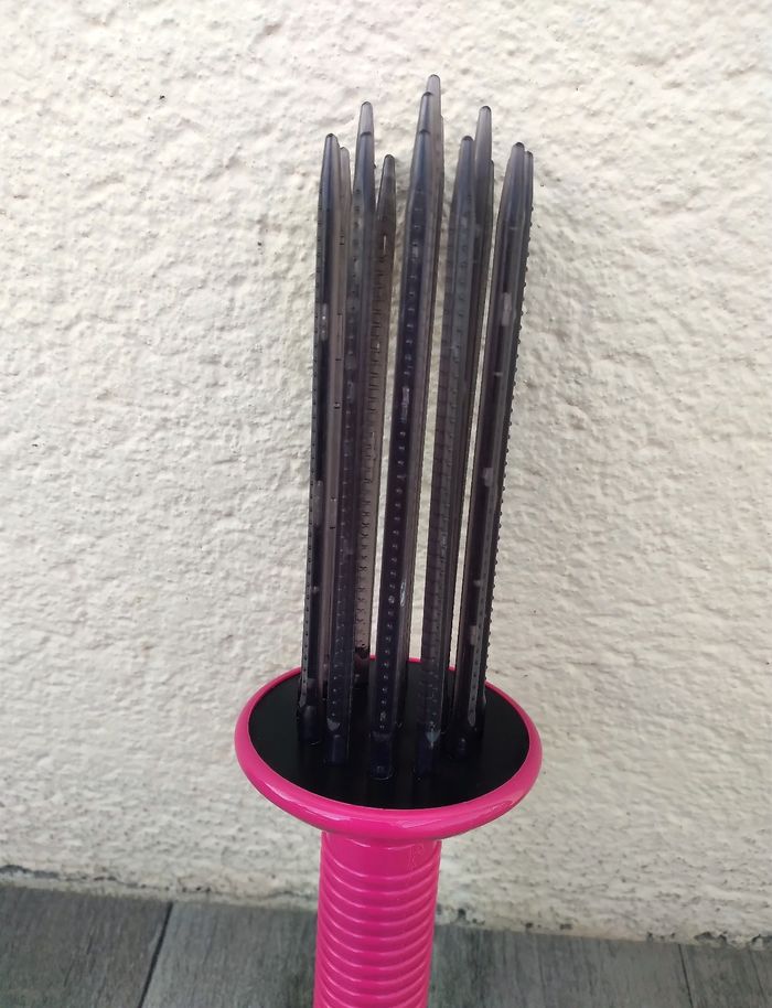 Brosse cheveux à longs picots • En plastique • Hauteur de la brosse 25 cm • Picots : diamètre 4 cm, longueur 13 cm