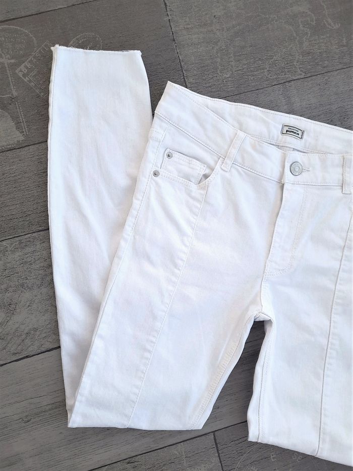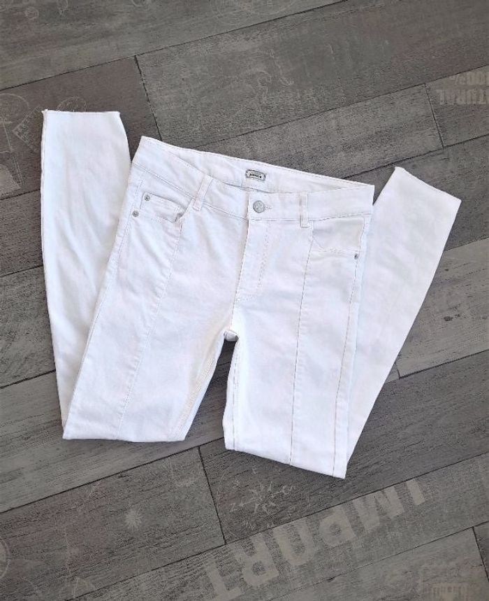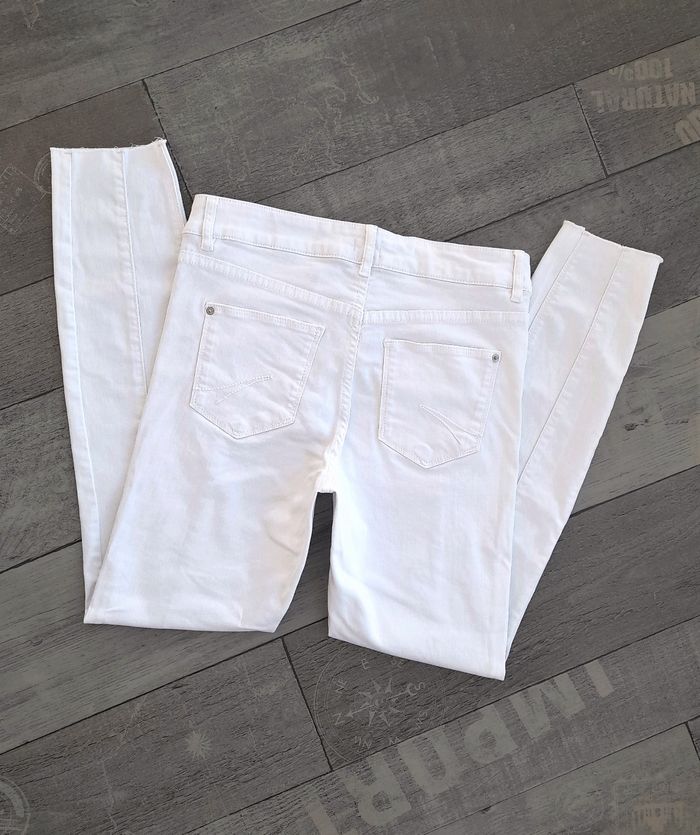 Pantalon skinny blanc neuf - Pimkie • 5 poches • Matière stretch • Finition sans ourlet • Taille 36 ➥ Neuf sans étiquette de composition ➥ Valeur 26€ • Tour de taille 73 cm • Profondeur de l'avant 22 cm • Longueur totale 103 cm