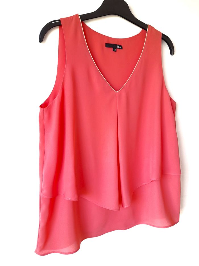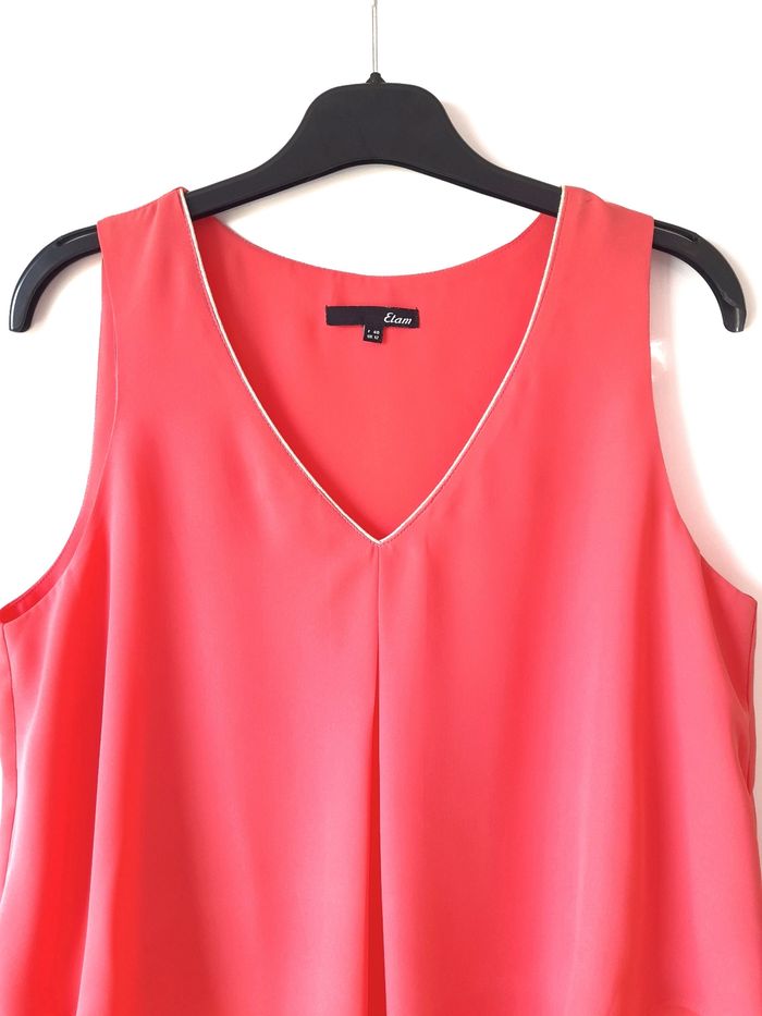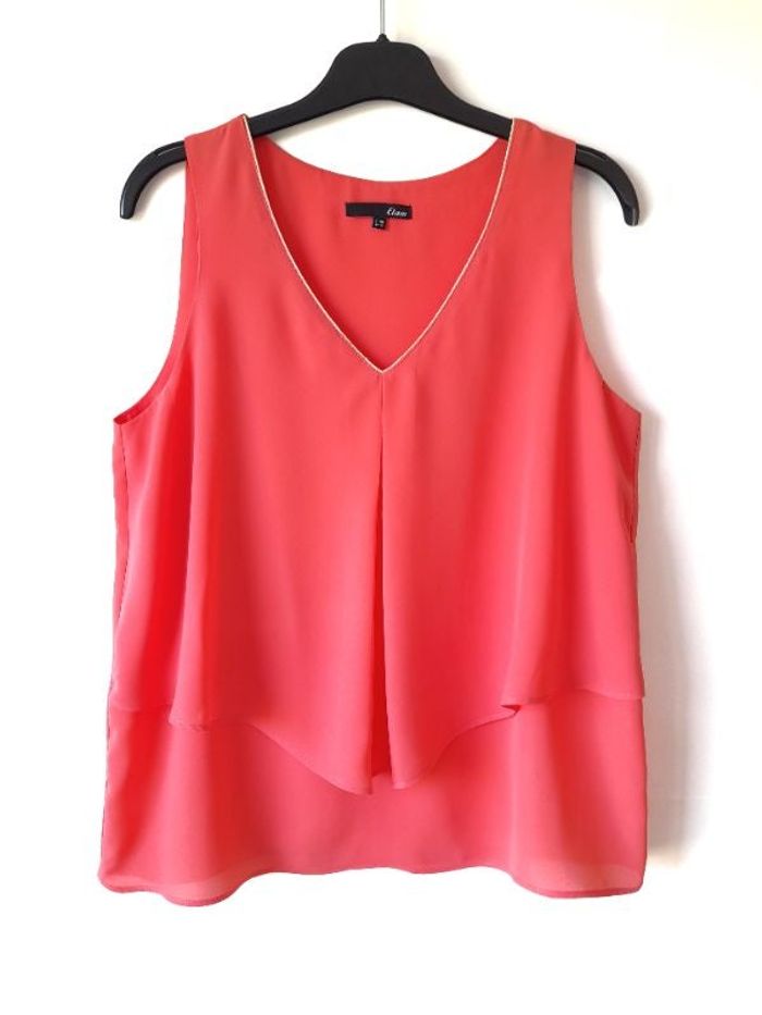 Débardeur blouse corail en voile - Etam • Décolleté en V doré • Double voile sur le devant • Taille 40 ➥ Comme neuf, très peu porté • Largeur aisselle 48 cm • Longueur 65 cm